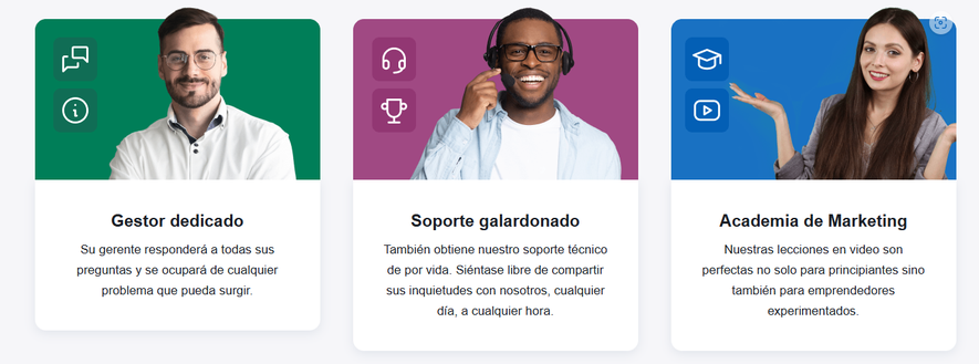 No más pérdidas de tiempo en investigación y desarrollo, obtienes un logotipo, un dominio relacionado con el nicho y todas las herramientas necesarias para hacer crecer tu marca.